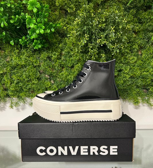 Le Converse CTAS Lift Double Stack HI portano l’iconico stile Chuck Taylor ad un nuovo livello — letteralmente.Con la loro suola platform doppia, regalano qualche centimetro in più senza rinunciare al comfort e al look intramontabile di Converse. Il modello in vernice nera dona un tocco lucido e deciso, perfetto per...