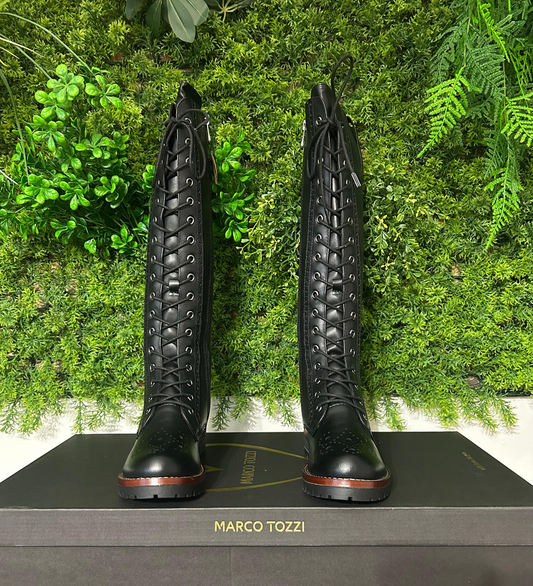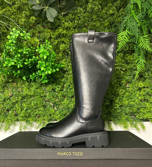 Lo stivale con suola carrarmato Marco Tozzi è l’emblema dello stile contemporaneo che unisce eleganza e carattere.Realizzato in morbida ecopelle nera, avvolge la gamba con una linea pulita e slanciata, mentre la suola chunky dona grinta e stabilità a ogni passo. Versatile e comodo, è perfetto per affrontare le giornate...