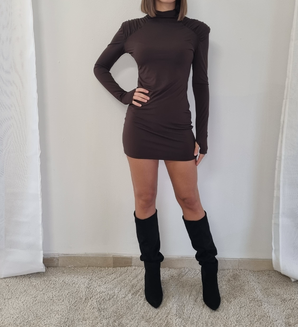 Elegante, essenziale e super femminile: questo abito corto a collo alto è pensato per valorizzare la silhouette con semplicità e stile. Realizzato in tessuto morbido ed elasticizzato, avvolge il corpo senza costringere, garantendo una vestibilità confortevole e slanciata.